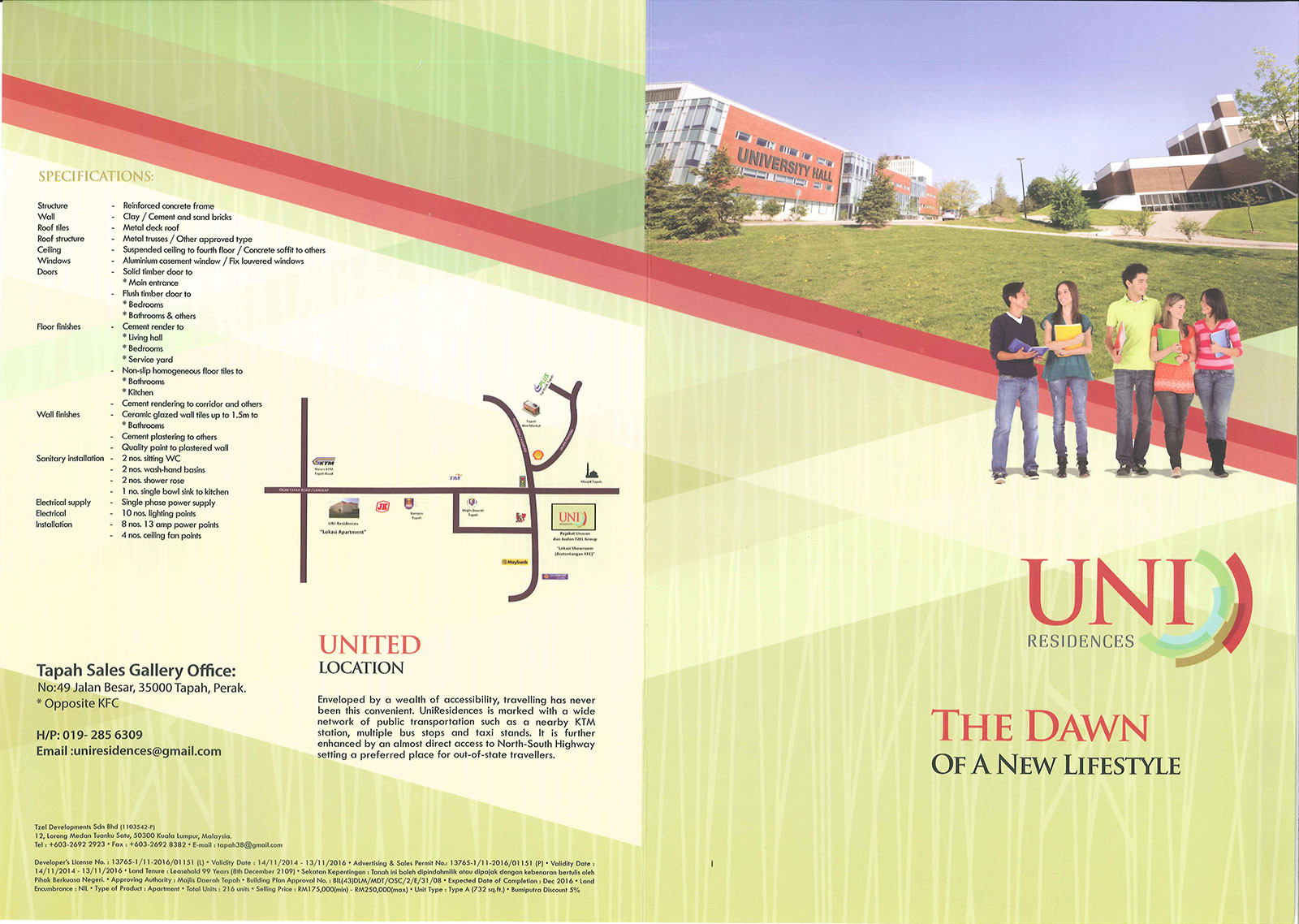 UNI RESIDENCES TAPAH is the symbol of a new lifestyle in Tapah. This medium cost apartment promises a varieties and comfort to all prospective residents and promising ideal for investors.